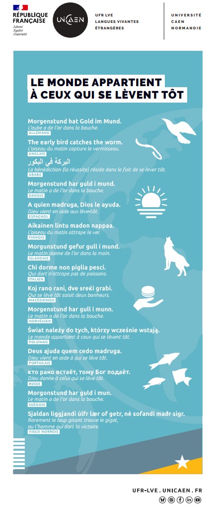 La demande pour les autres langues n’en demeure pas moins soutenue. L’UFR des LVE propose, en effet, des parcours diversifiés aux niveaux Licence et Master, ou encore des diplômes d’université, qui permettent d’apprendre l’anglais, l’allemand, l’espagnol, le portugais, l’italien, le russe et le polonais, les langues nordiques (danois, suédois, norvégien, islandais, finnois), l’arabe et le macédonien… et d’en faire un métier. Parmi les secteurs d’activité les plus cités, l’enseignement, le journalisme, le tourisme, le commerce international, la traduction, mais certains ont aussi fait part de leur souhait de faire carrière dans la gendarmerie, la critique gastronomique, ou le droit franco-italien, pour ne mentionner que quelques exemples.