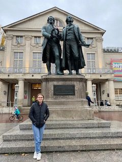 Née en 2004, Alexia Dupart-Jullien (cf. photo ci-dessus) a obtenu en 2025 une licence LLCER allemand. Elle a choisi cette formation par passion pour la langue et la culture allemandes. Elle s’intéresse tout particulièrement aux interactions entre langue, littérature et culture, ainsi qu’à la manière dont celles-ci reflètent les évolutions sociales et historiques. Ses goûts littéraires sont variés : outre les auteurs classiques tels que Goethe, Hölderlin et Schiller, elle apprécie également la littérature contemporaine. Alexia se consacre actuellement à la lecture de recueils poétiques de l’époque baroque et des Lumières. Parmi ses ouvrages de prédilection figure Zauber der Stille de Florian Illies, dont l’approche poétique de la vie de Caspar David Friedrich l’a profondément inspirée.